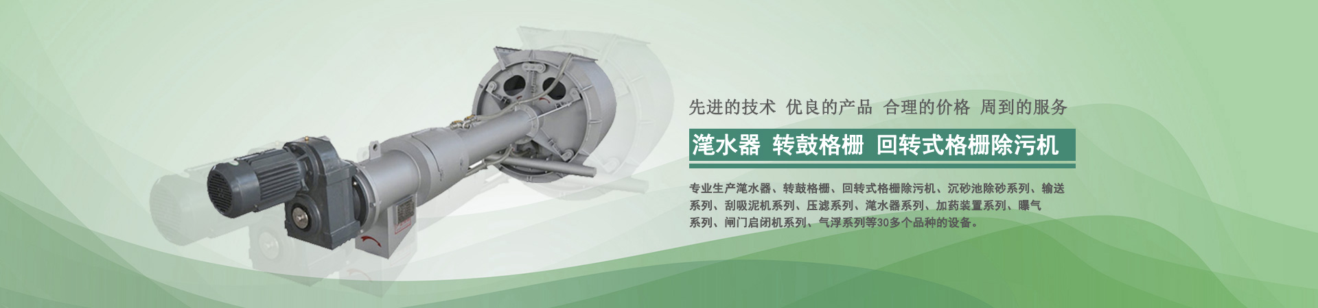 本公司目前專業(yè)生產(chǎn)轉(zhuǎn)鼓式精密過濾器、轉(zhuǎn)鼓格柵、回轉(zhuǎn)式格柵除污機(jī)、沉砂池除砂系列、輸送系列、刮吸泥機(jī)系列、壓濾系列、潷水器系列、加藥裝置系列、曝氣系列、閘門啟閉機(jī)系列、氣浮系列、曝氣器系列、填料系列等30多個(gè)品種的設(shè)備...